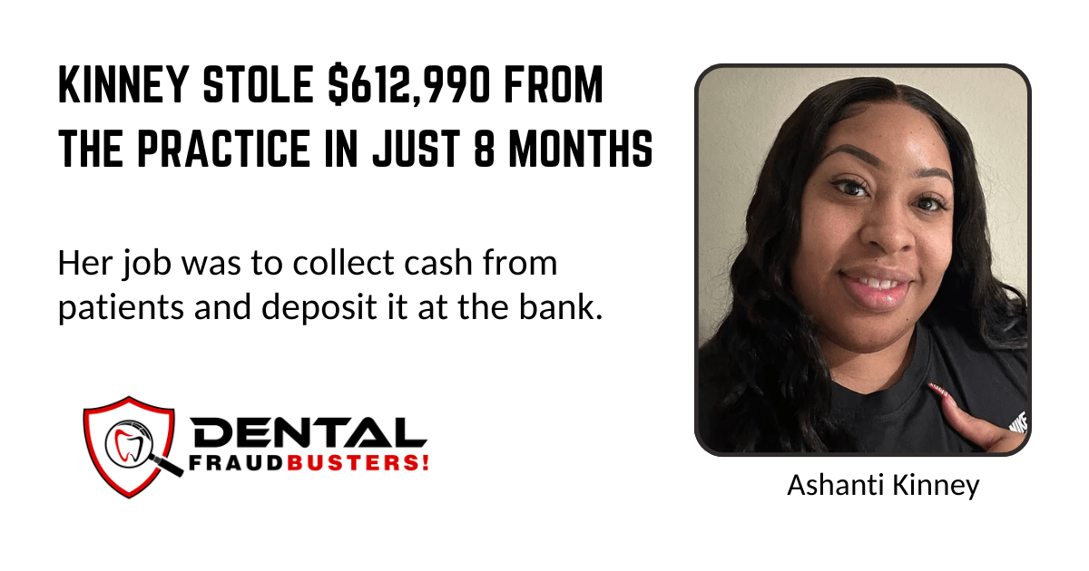 Officials say Kinney was going through patient accounts and marking them down as “paid” for the procedures, but was keeping the cash.