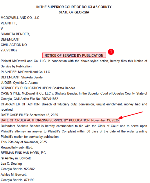 A lawsuit was filed on Sep-18-2025 against BENDER by McDowell and Co. claiming breach of fiduciary duty, conversion, and unjust enrichment.